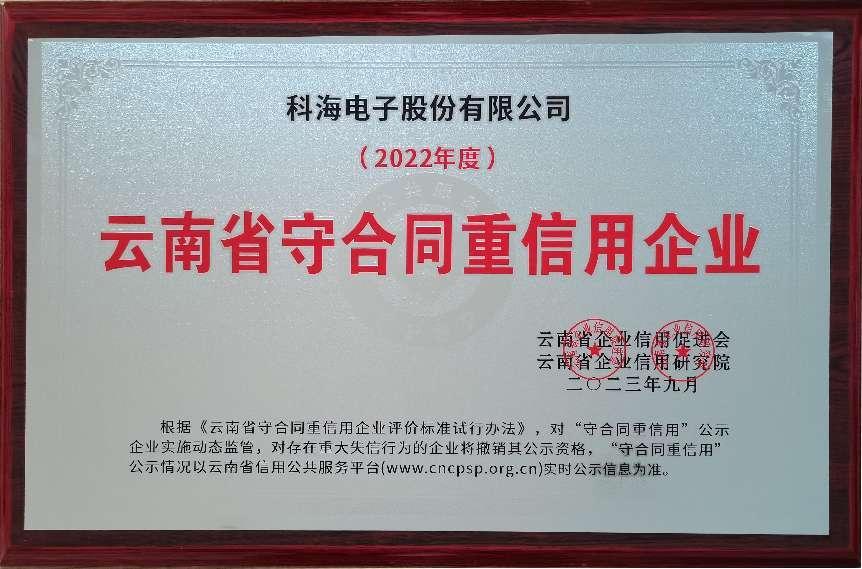 近日,云南省2022年度“守合同重信用”企業(yè)認(rèn)定名單出爐,科海電子獲此殊榮。